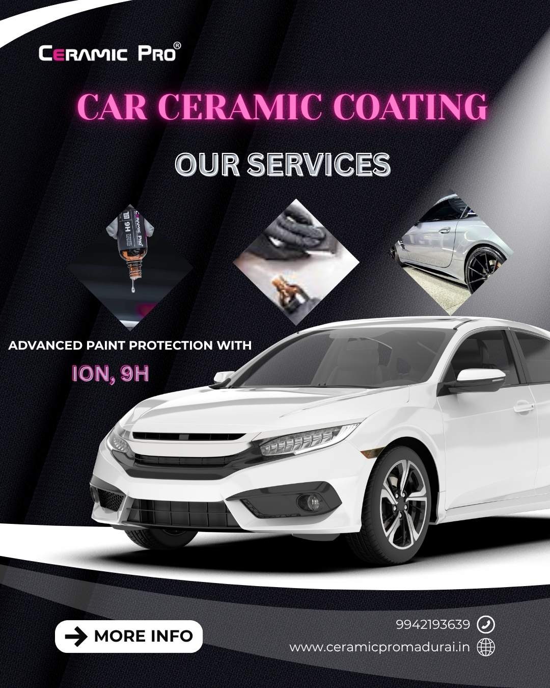 Not just a shine.... It's a shield! Ceramic coating locks in your car's beauty and keeps it protected from harsh sun, dirt & minor scratches. Drive clean, stay glossy, and stand our everyday! Contact: 9942193639 Website: www.ceramicpromadurai.in Location: Ceramic Pro NO. 81M Ganagavel Garden, Virudhunagar Byepass Road, Kappalur, Madurai. #ceramiccoating #cardetailingindia #carcaretips #carprotection #paintprotection #paintprotectionfilm #ppfindia #detailingstudio #carshine #glossfinish #carwash #carsofindia #madurai #tamilnadu #carlover #luxurycarcare #shineandprotect #carupgrade #cleanride #detailerslife #carsdaily #instacars #carstyle #vehiclecare #premiumfinish.